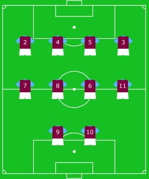 – Ideally, teams are laid out in the formation they use most often. If, though, all 11 numbers are filled then the formation is dictated by the players in those shirts.