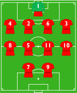 Why was their system fascinating? For one, if everybody had so many ‘wrong’ numbers, it would be tiresome, so the Reds’ distinctiveness definitely helped. Take a look at the formation below, which was how Liverpool lined out against Manchester United on September 16, 1990. We were actually going to use the team from the 4-4 FA Cup draw with Everton – Kenny Dalglish’s last game before resigning – but, as we will explain below, that was actually too off the wall.